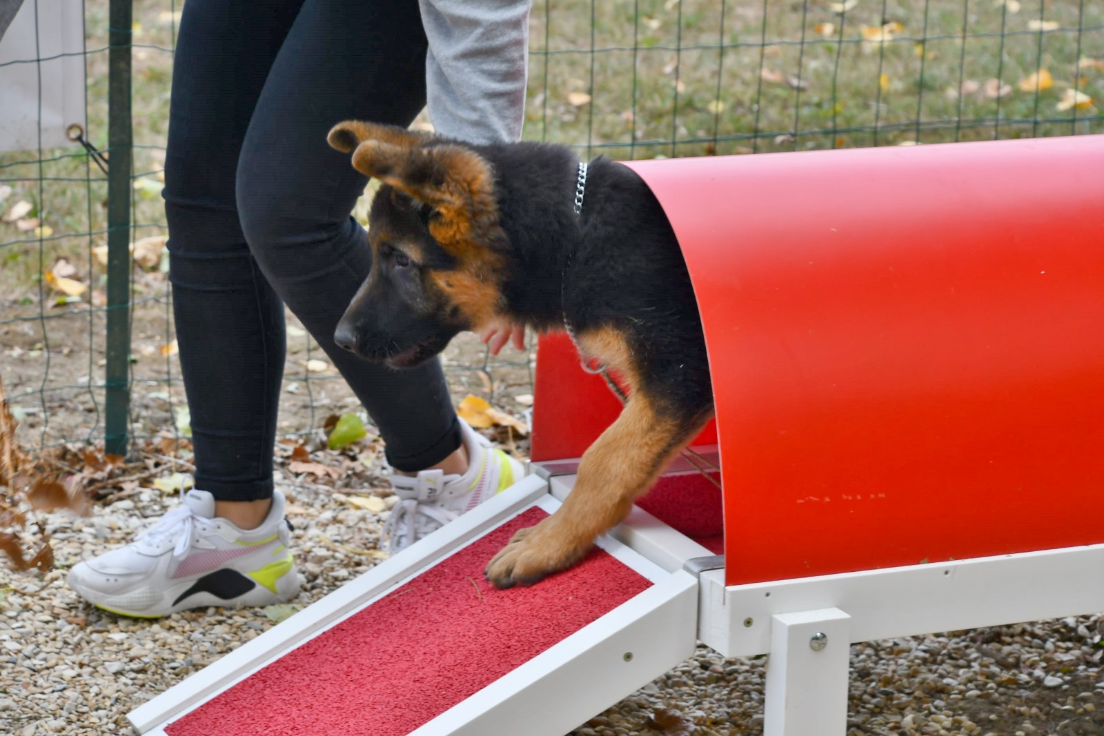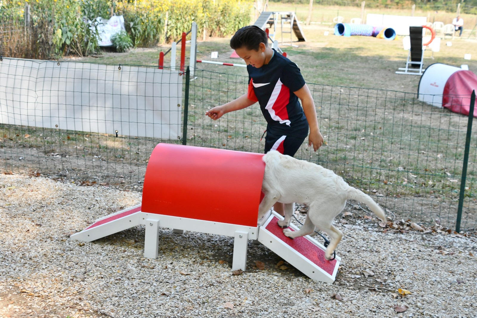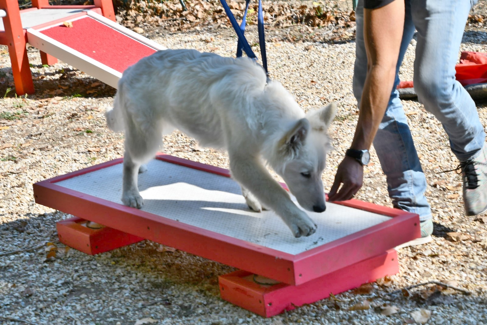 Le cours comprend l’ obéissance, le rappel, l’apprentissage des positions (« assis », « couché » ..), la sociabilité ainsi qu’un mini parcours d’ Agility pour éveiller les sens du chiot.