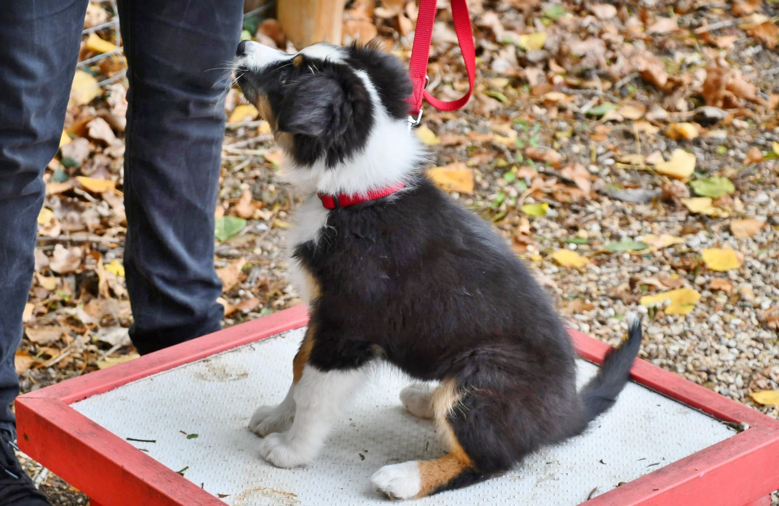 Le marché au pied est réalisé avec le maître, toujours avec une récompense pour le chiot. Il est important pour le maître d’apprendre à quel moment donner la récompense afin que son chien ait l’envie de recommencer.